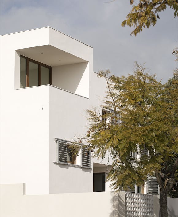 Un nuevo volumen en forma de voladizo genera un espacio intermedio con vistas al mar. La ampliación prescinde de elementos superfluos y redefine la casa con una volumetría limpia y clara. La antigua fachada opaca y sin vistas se convierte ahora en un marco hacia el paisaje del jardín y unas magníficas puestas de sol, diluyendo la frontera entre el interior y el exterior.