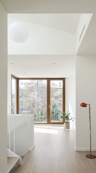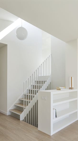 Una sucesión de espacios encadenados da forma a la ampliación de la casa, unidos por la escalera y conectados visualmente entre sí. Estos nuevos rincones de vida despliegan un abanico de posibilidades, enriqueciendo el alma de la vivienda original.